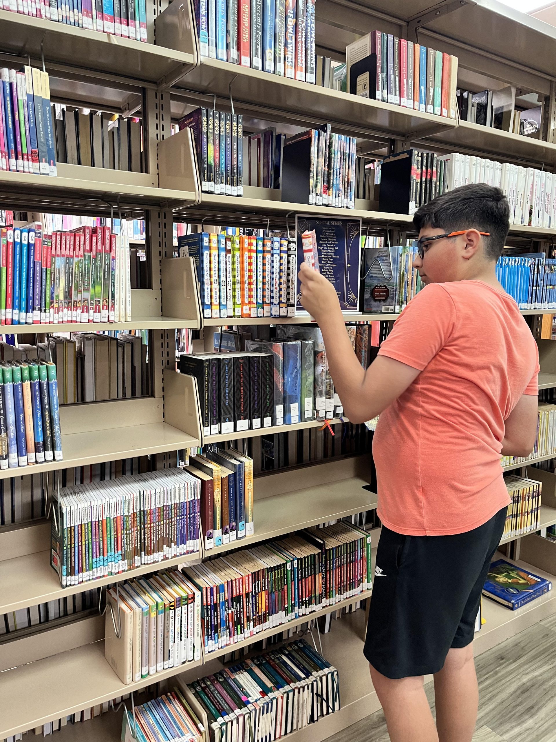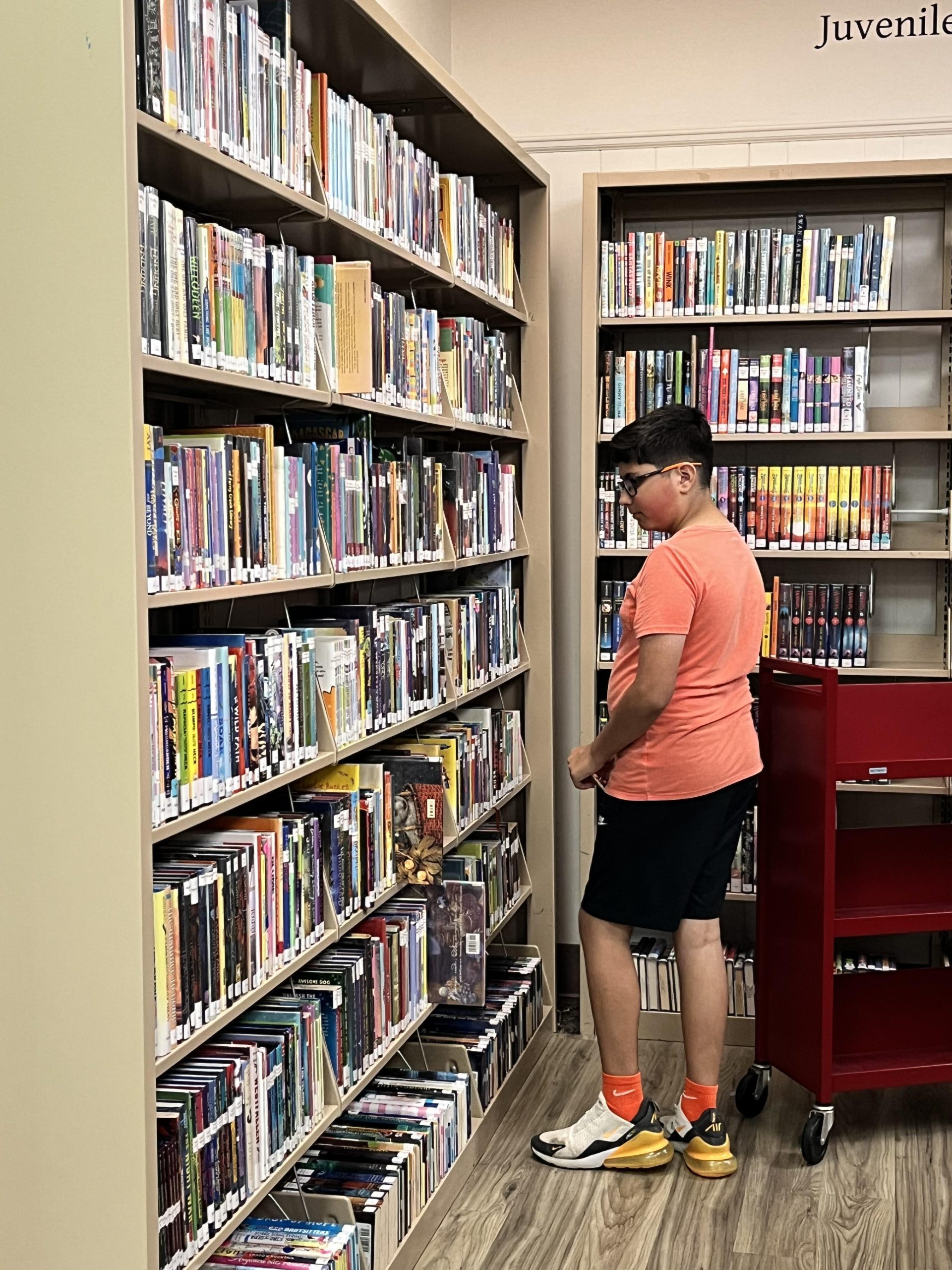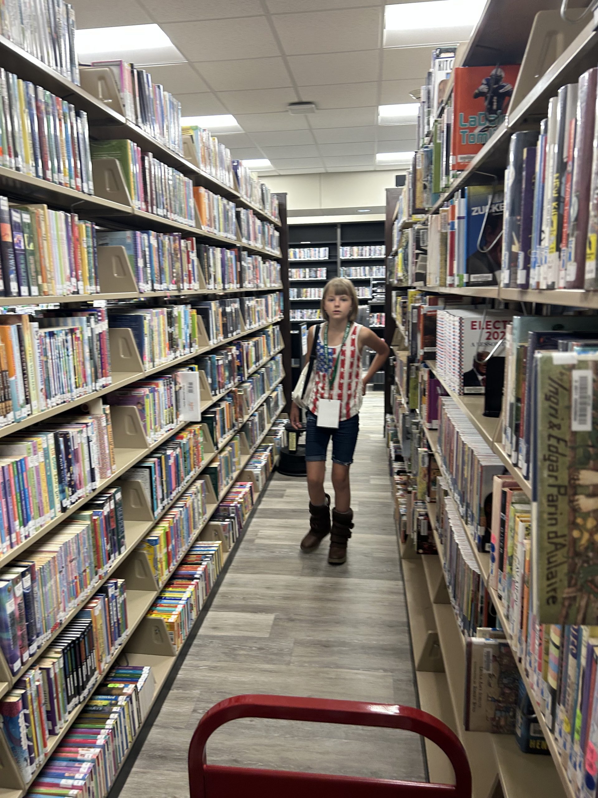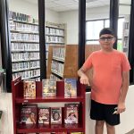 Ethan is the final Dumont sibling participating as one of this month’s Kid Librarians. He is in eighth grade, and like Abigail, he enjoys studying math. Ethan’s favorite book genre is fiction, especially Richard Paul Evans’s Michael Vey series, because it is “full of action,” he said. He appreciates that the library has many other options available too, though. He said, “There are lots of books to choose from.” He also enjoys the various activities and events hosted by the library. Ethan’s other hobbies include learning to play piano. Also, he said, “I am very good at card tricks.” Ethan plans to be an electrical lineman when he grows up.
