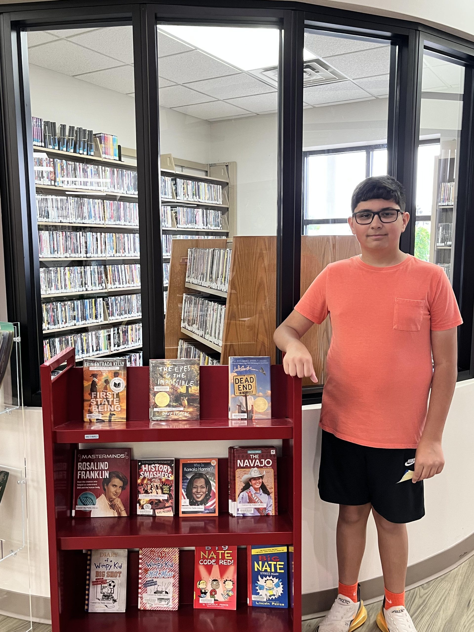 Central City’s Kid Librarian for April 2026 is Jacob Sharma. Sharma, 11, is in fifth grade. He enjoys social studies at school – “I like learning about events and geography,” he said. When it comes to reading, however, Sharma likes science fiction best. His favorite book is The First State of Being by Erin Estrada Kelly, which features time travel as a key plot element. Sharma said, “I like that this book shows two worlds. One is far in the future, the other is in the 1990s.