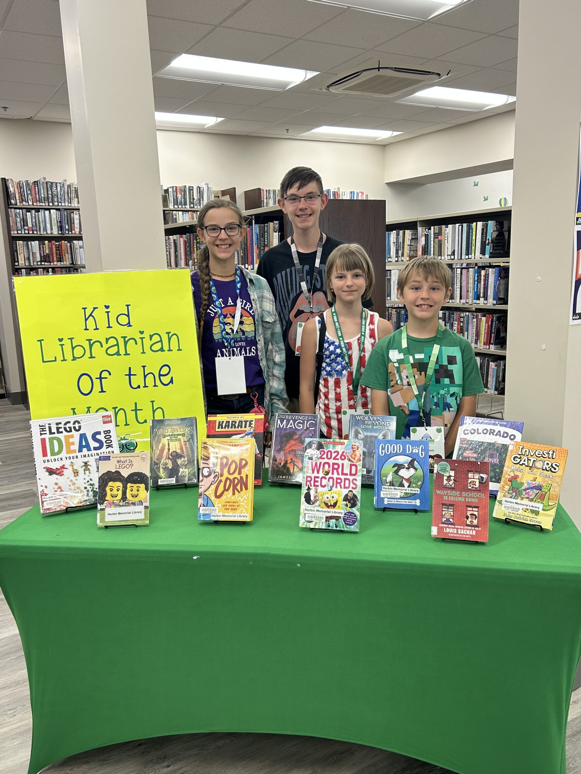 Harbin Memorial has more than one Kid Librarian for April; in fact, a whole group of siblings participated! The Dumont siblings – Tanner, 8; Aubrey, 10; Abigail, 12; and Ethan, 13 – are this month’s Kid Librarians at Greenville.