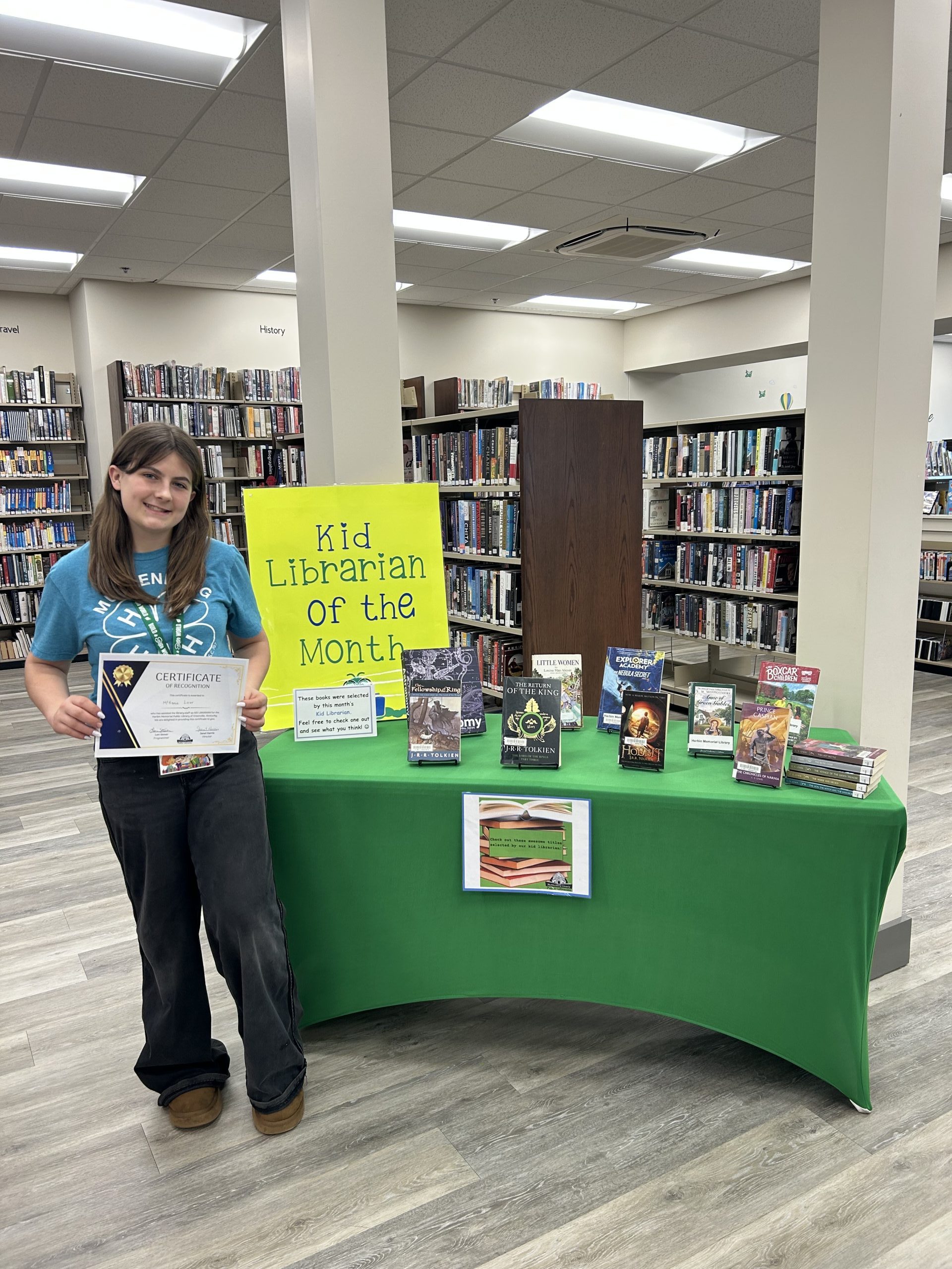 Chosen Kid Librarians are acknowledged inside the library with a sign next to their display, as well as being recognized in the local newspapers and on the library’s website and social media accounts.