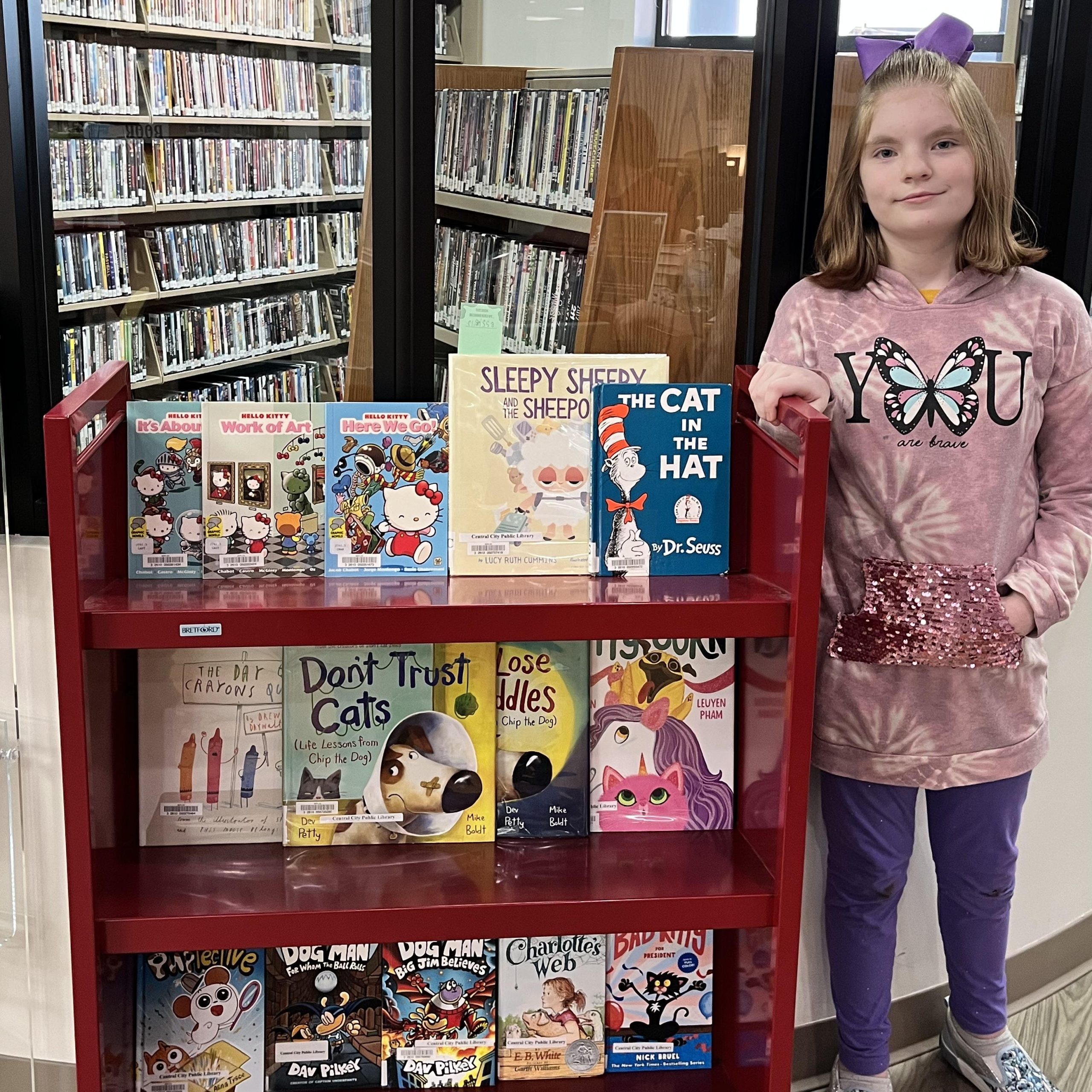 Central City’s Kid Librarian for January 2026 is 9-year-old Clarissa Benson. Clarissa is in fourth grade. Clarissa enjoys reading adventure books, like the I Survived series. However, she doesn’t stick just to that genre; she loves the variety of books available at the library. “They let you experience stories in your mind,” she said. Her favorite books are actually those by Dr. Seuss, especially The Cat in the Hat because it’s so funny. Clarissa particularly appreciates picture books like the ones written and illustrated by Dr. Seuss because she is an aspiring artist herself. She said, “I love making beautiful, colorful things.” Her talents include drawing and coloring, and she hopes to continue creating art as an adult, either with the visual arts or possibly even in the kitchen. Clarissa enjoys baking and hasn’t decided which job, artist or baker, she wants most. She is also a talented dancer.