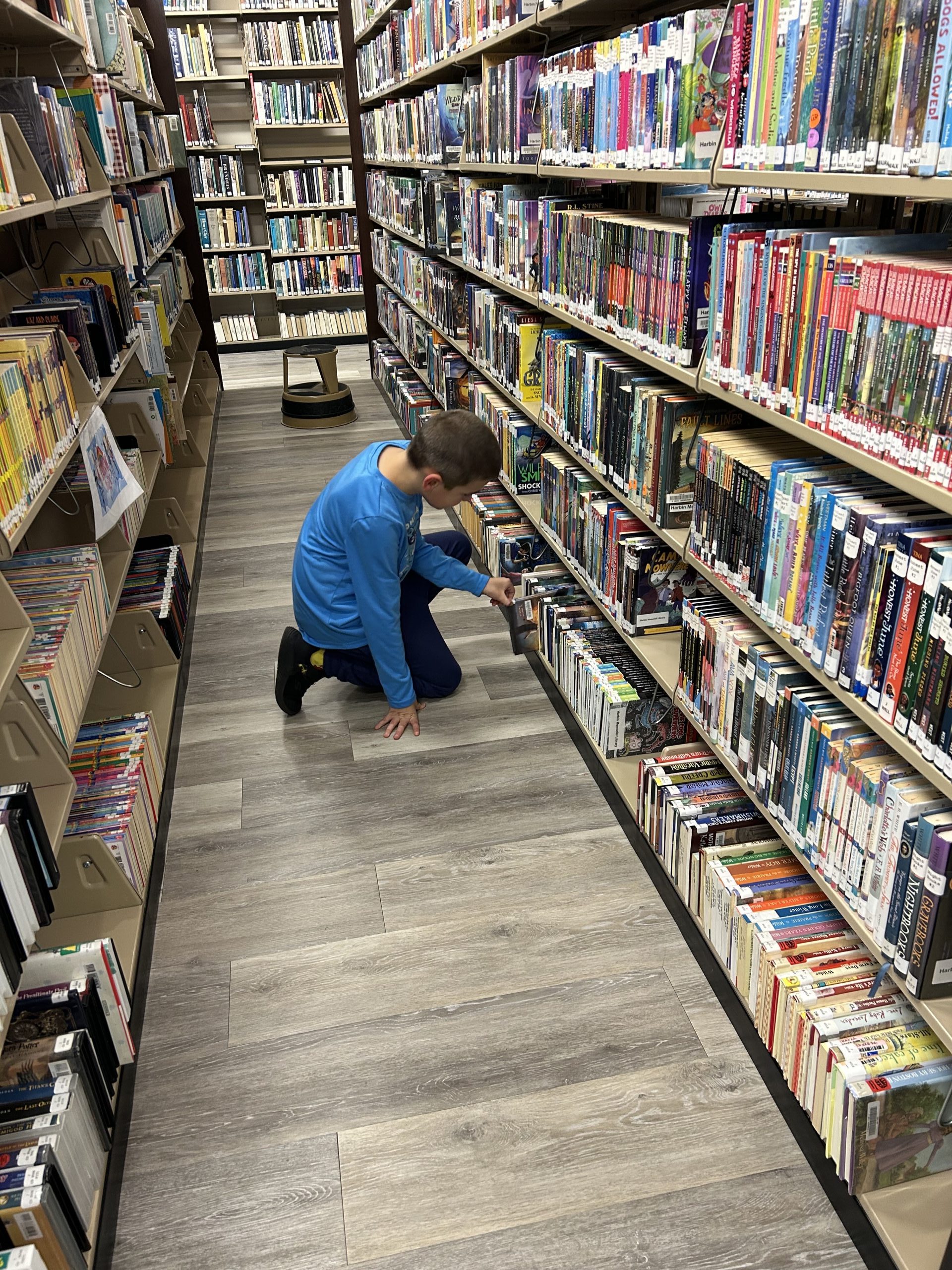 Zane Wooldridge is Harbin Memorial’s Kid Librarian for January. Zane is 9 years old and is in third grade. Zane has a wide variety of interests. His favorite school subjects are ones in the STEM category, like science and math, but he also enjoys learning about history. He said, “My friends at school call me the ‘history guy’ because I love history.” His favorite book genre, historical fiction, reflects that choice, but, like Clarissa, Zane doesn’t limit himself to just one genre. His favorite books are actually the Wings of Fire fantasy series by Tui T. Sutherland. “I can connect with the characters, and I like the action,” he explained. He added that he also appreciates that the library has a large variety of books to choose from, and he is open to suggestions for his next read. On top of all the other subjects he enjoys, Zane also has an interest in art; he hopes to eventually work for his family business doing artwork and etching.