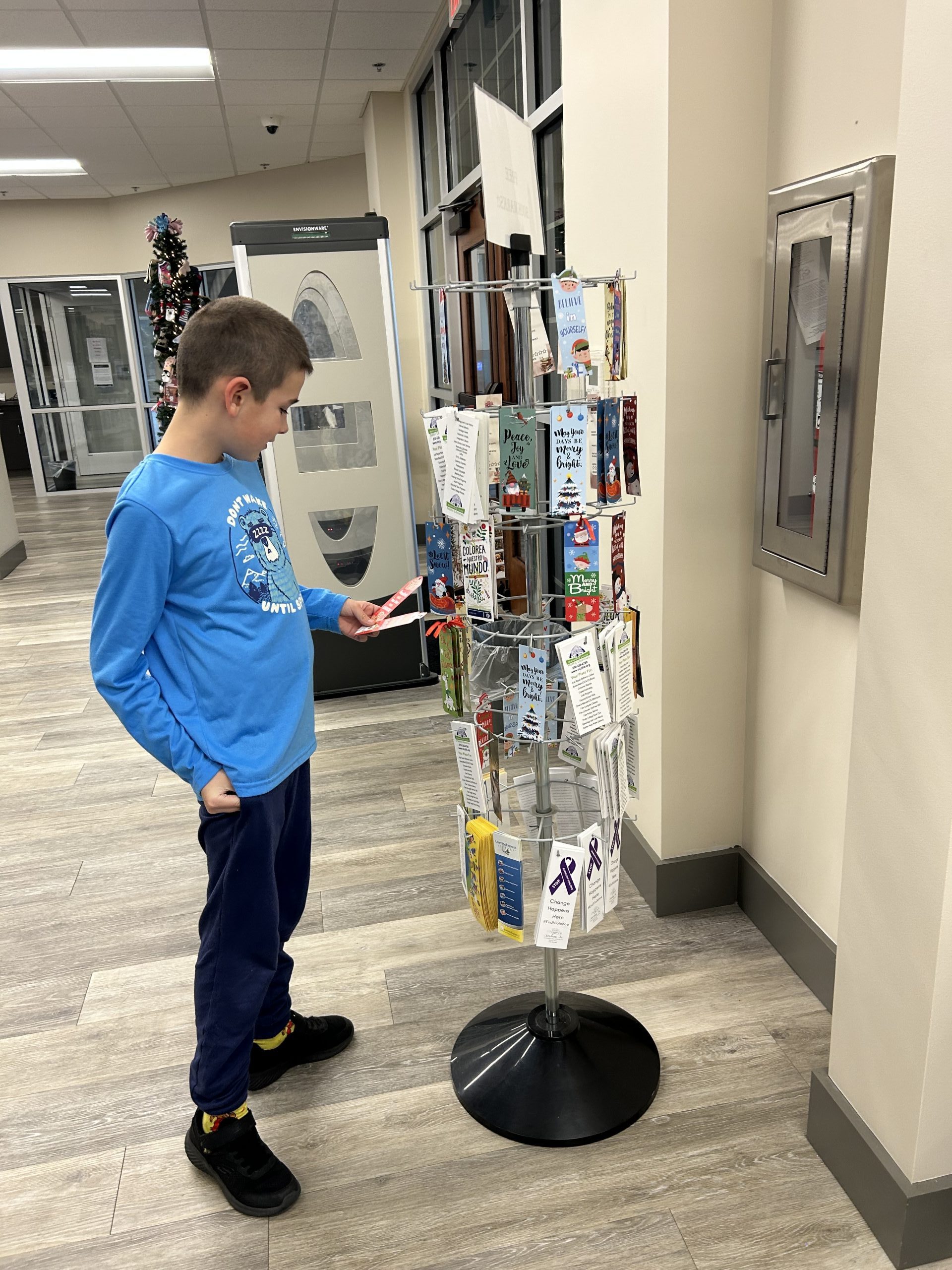 Chosen Kid Librarians are acknowledged inside the library with a sign next to their display, as well as being recognized in the local newspapers and on the library’s website and social media accounts.