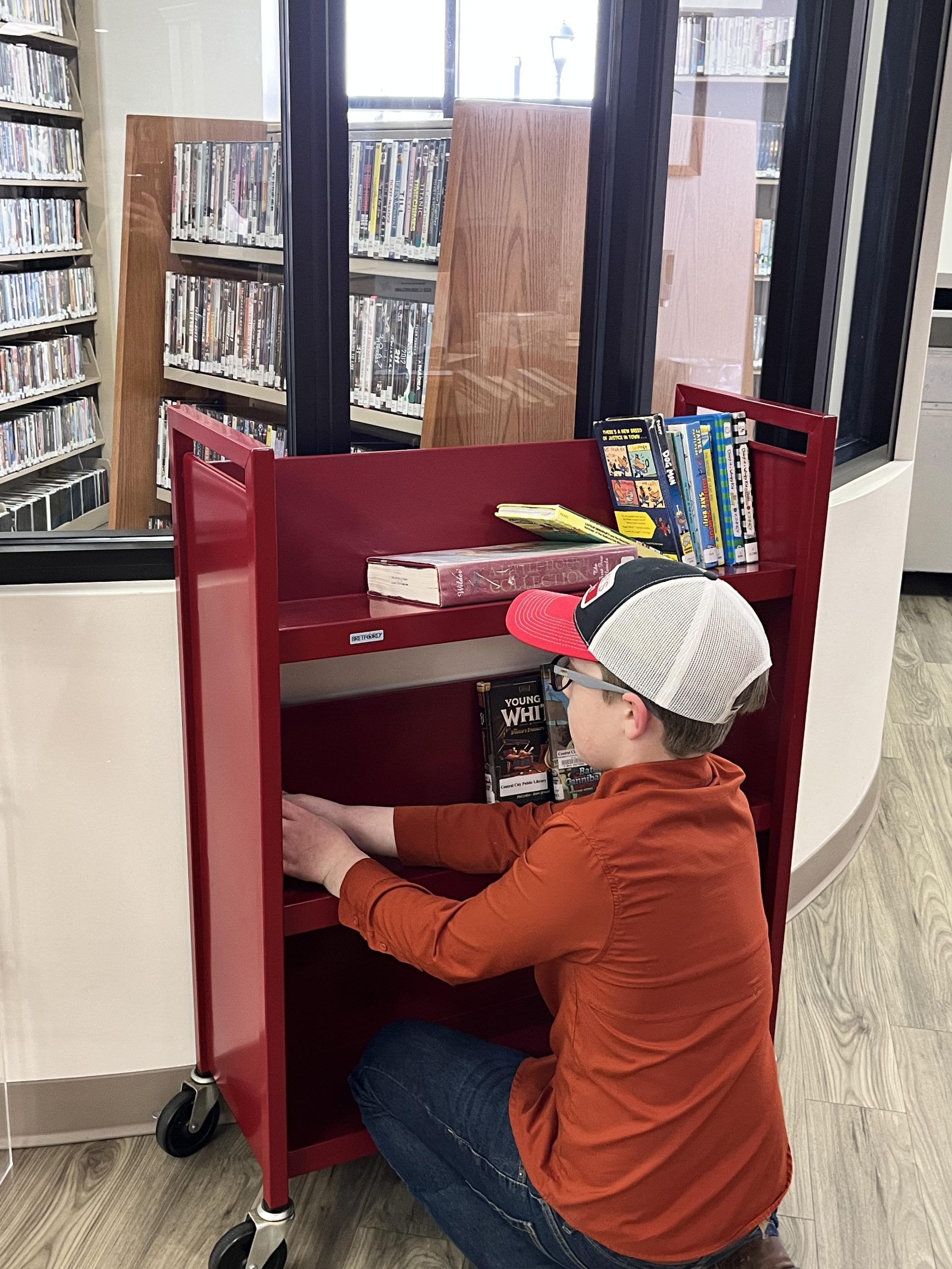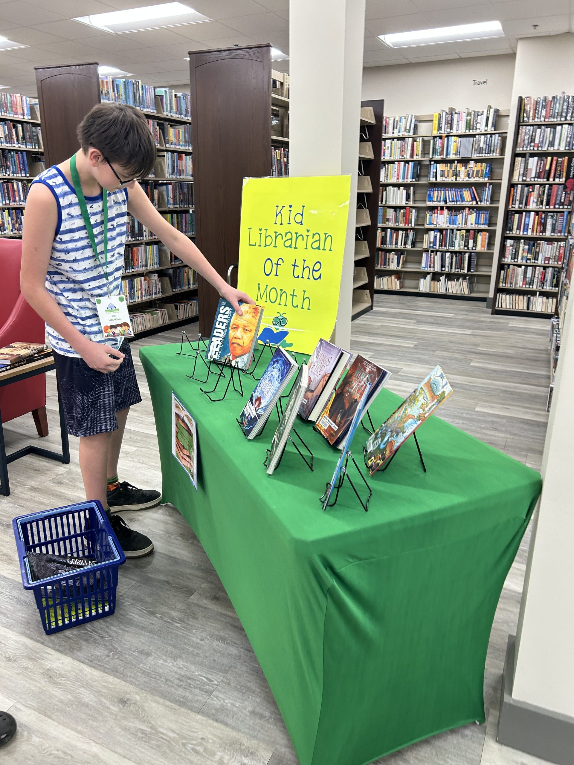 Kid Librarians are chosen monthly to design a juvenile display at the library. Each Kid Librarian may choose a theme for their display, select library materials to highlight and decide how to organize and best show off the chosen titles. New Kid Librarians are selected each month for each library branch (Harbin Memorial and Central City).