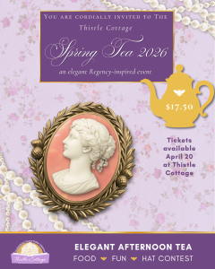 The 2026 Spring Tea will be held May 9 at 2 p.m. at Thistle Cottage. (122 South Cherry Street in Greenville). For more information about the annual Spring Tea, contact Thistle Cottage at 270-338-4760.